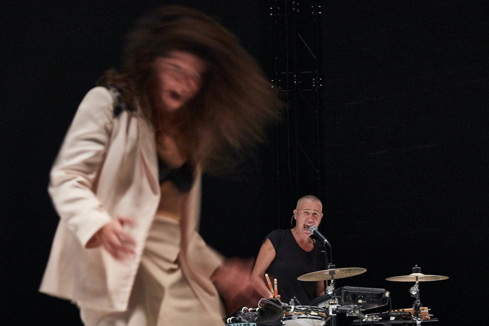 Mercedes máis eu is a collaboration between the artist Janet Novás and the composer Mercedes Peón in which they explore the relationship between “her dance and her music” through a drum kit, song, dance, memory and silence.