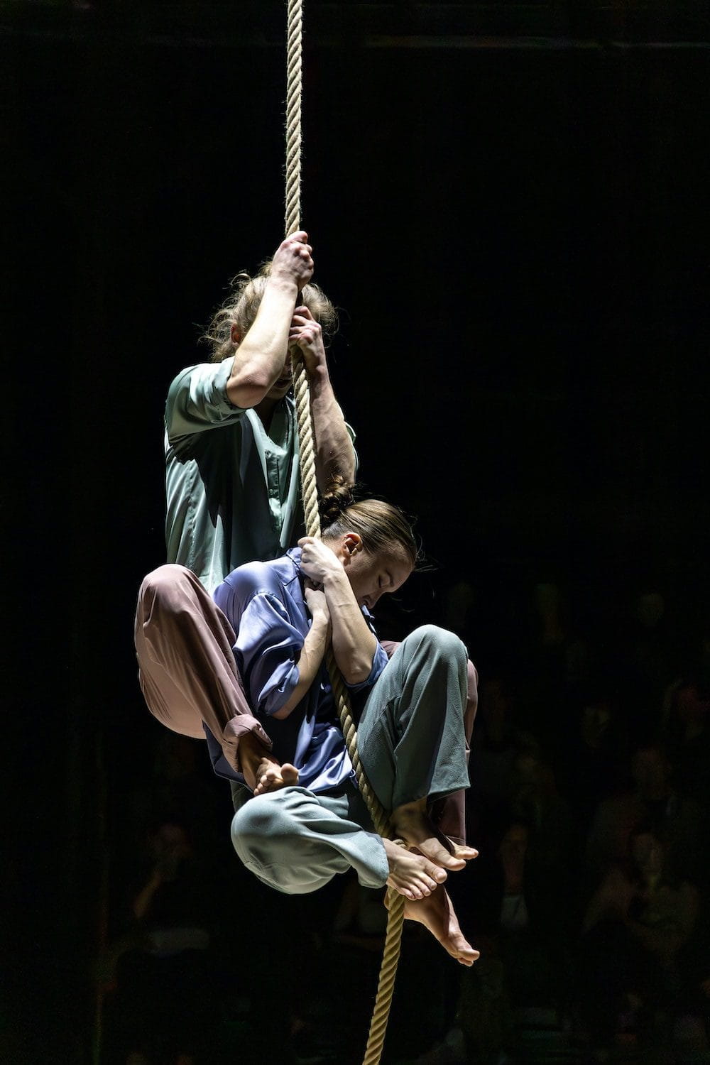 In a calm space, a long rope hangs from the ceiling. Two restless dancers move up and down and across the floor effortlessly. Their never-ending fluid movements unfold Silhouette Letters, a beautifully bleak duet which explores the impact of a father’s absence infused with a deep sense of longing. The work, which delves into the complex father-child relationship through vivid childhood memories, draws from the choreographer’s personal experience. In this search for connection and need for reconciliation, the Silhouette Letters lays a question: how does absence shape one’s identity?