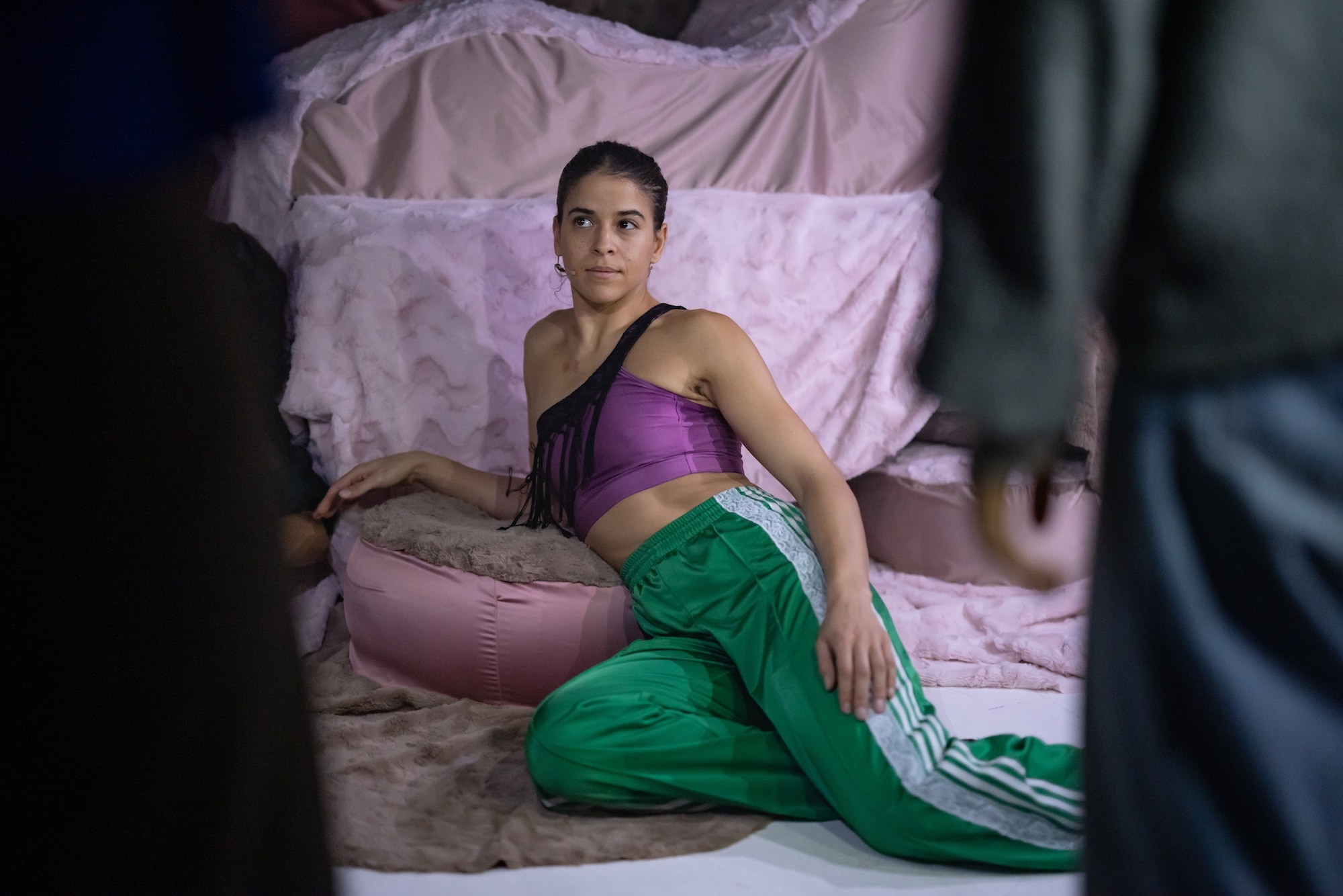 Soraya Leila Emery is a Swiss-Moroccan choreographer and performer based in Zürich. She holds degrees from CFPArts Geneva, SEAD Salzburg, and a Master’s in choreography from ZHdK Zürich (2024). Her work explores female pleasure through a feminist lens, examining bodily autonomy, cultural identity, and Arab female representation. She was an associate artist at TanzPlan Ost (2023/2024) and is currently associate artist at Tanzhaus Zürich (2025/2026).