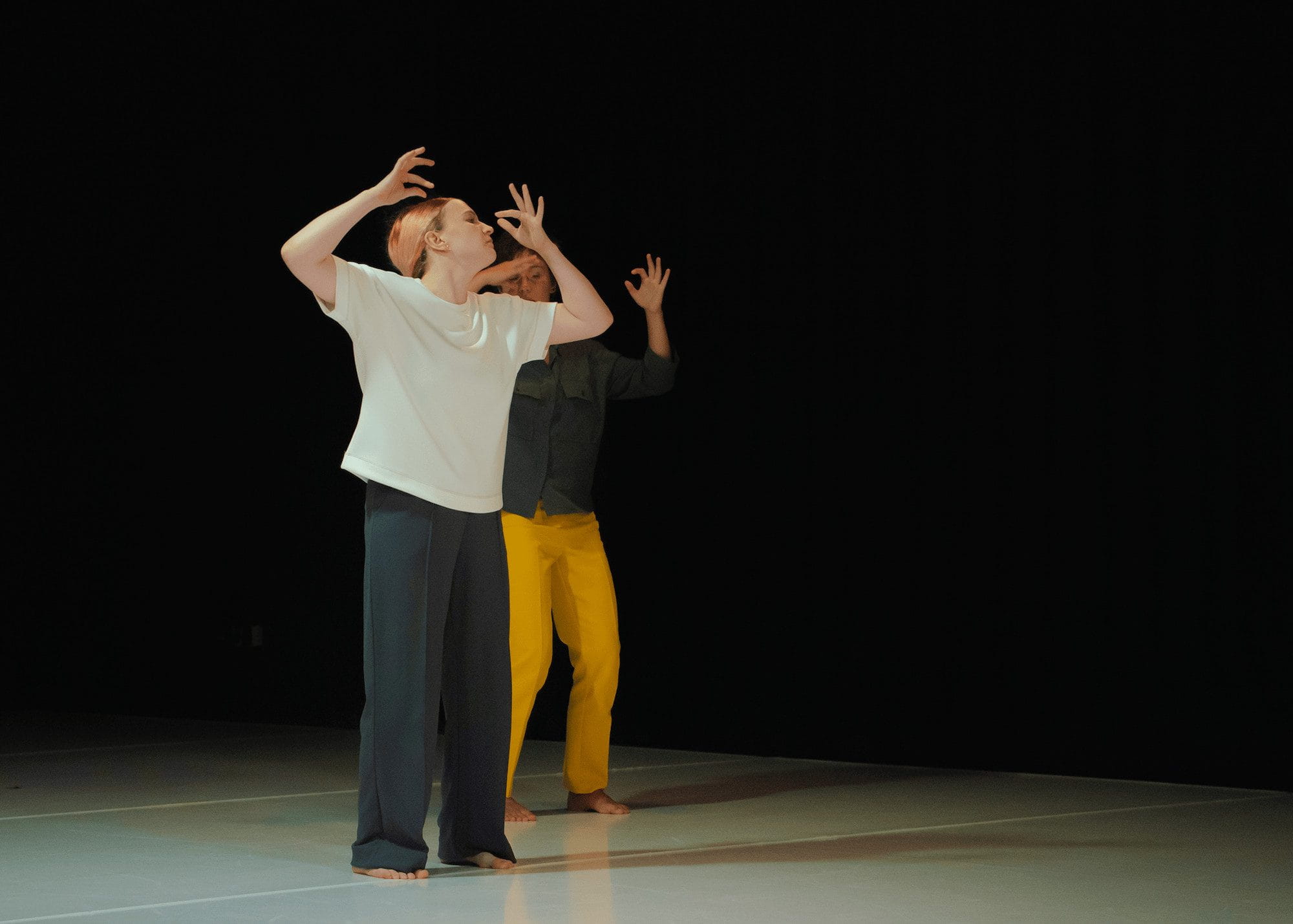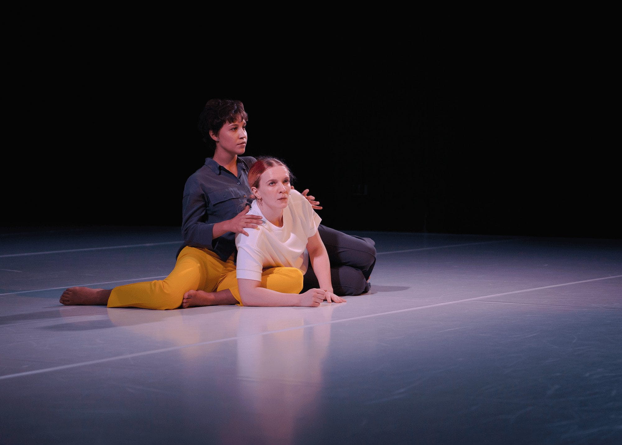 Work in Progress captures the story of two women, whose lives revolve around only one thing: their work. In a semi-fictional universe, we observe how the lack of motivation and purpose they feel influences their inner lives and compels them to find ways to withstand the constant pressure. From denial to outrage, from routine to non-conformity, the performers strive to put up a fight, in a world that seems to efficiently metabolise their revolt. Sensitive, funny, ironic, serious, the performance is a moving dialogue about the place work occupies in our society.